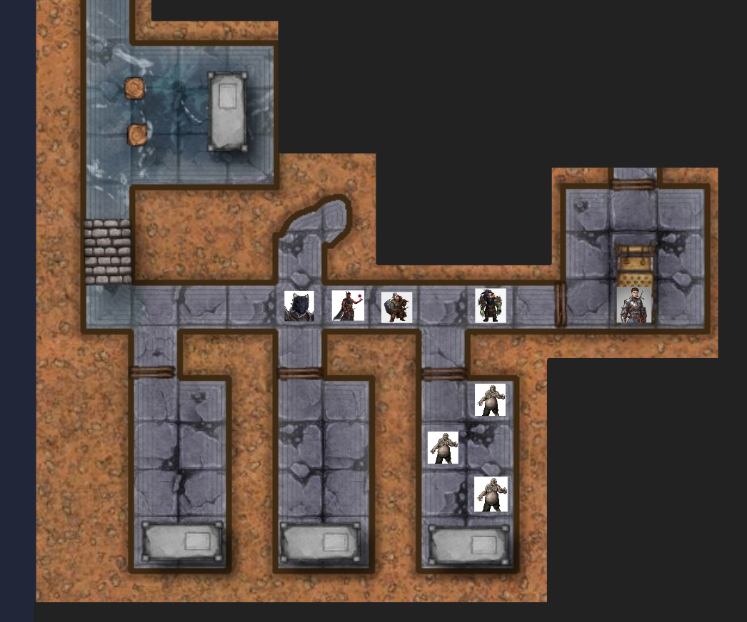 As the party was deliberating their course of actions, Tarhun took a peek inside the torture chamber, and recognized the man on the torture rack as Gideon Lightward, High Rider of the Hellriders. Thus, the decision was made: they entered the room, untied the knight from the torture rack, and fled the dungeon before anyone could notice.